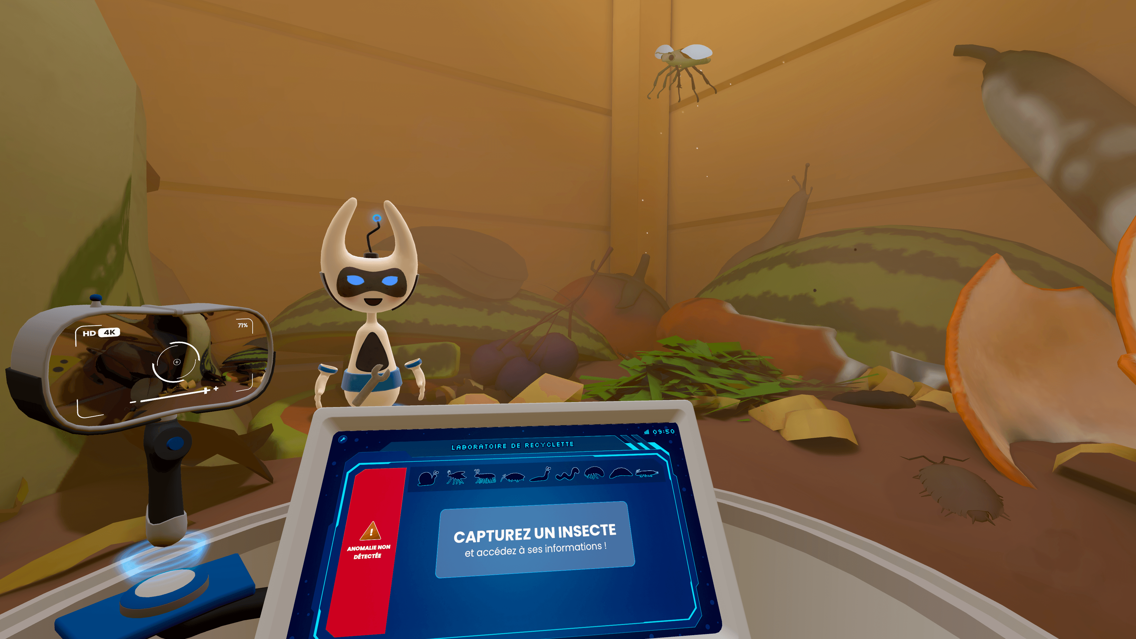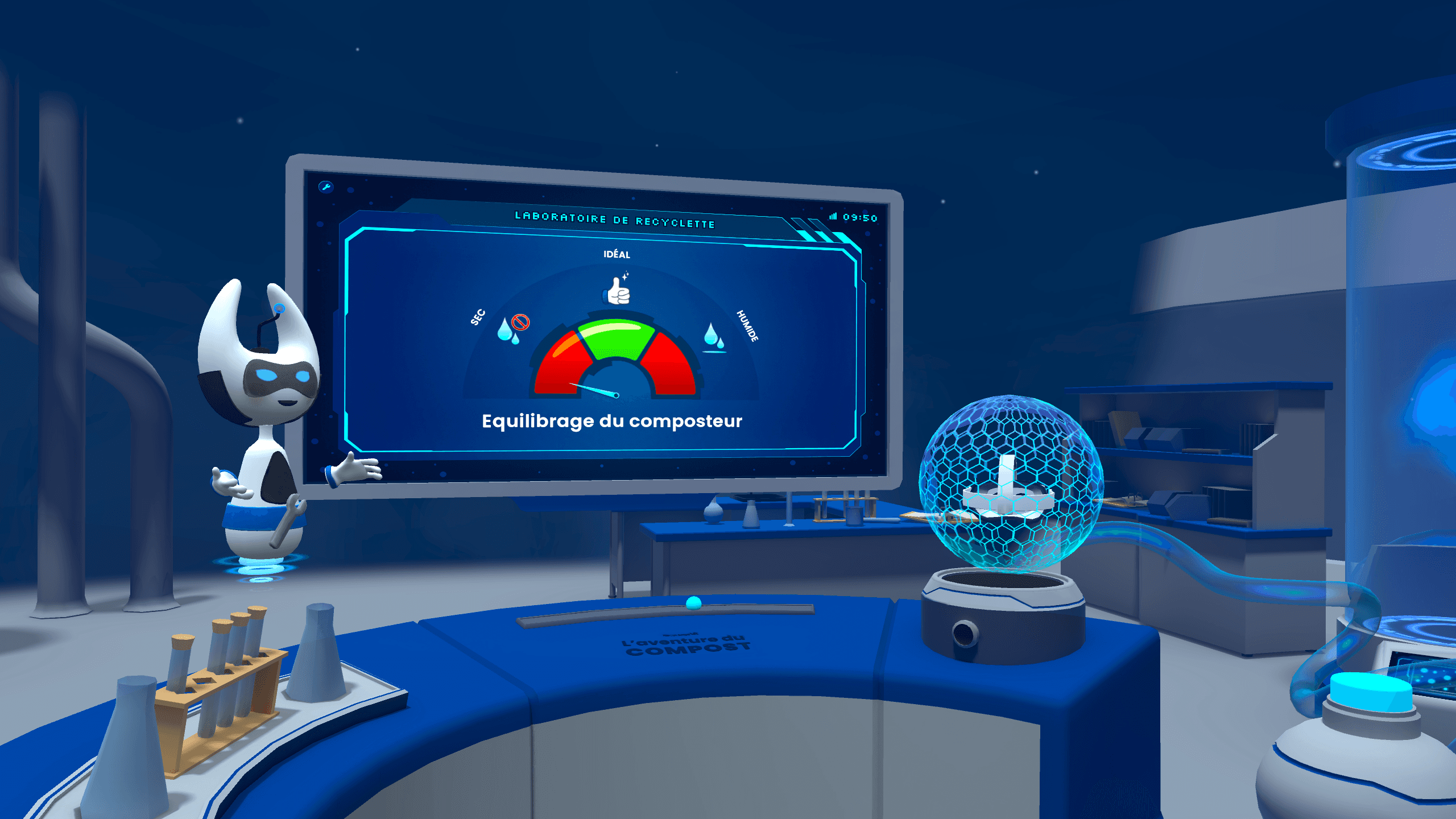L’Aventure du compost fait partie de RecyclageVR, notre catalogue d’applications autour du déchet et de l’économie circulaire. On y suit Recyclette, une petite inventrice passionnée d’écologie, qui guide les joueurs à travers les différentes étapes du compostage.