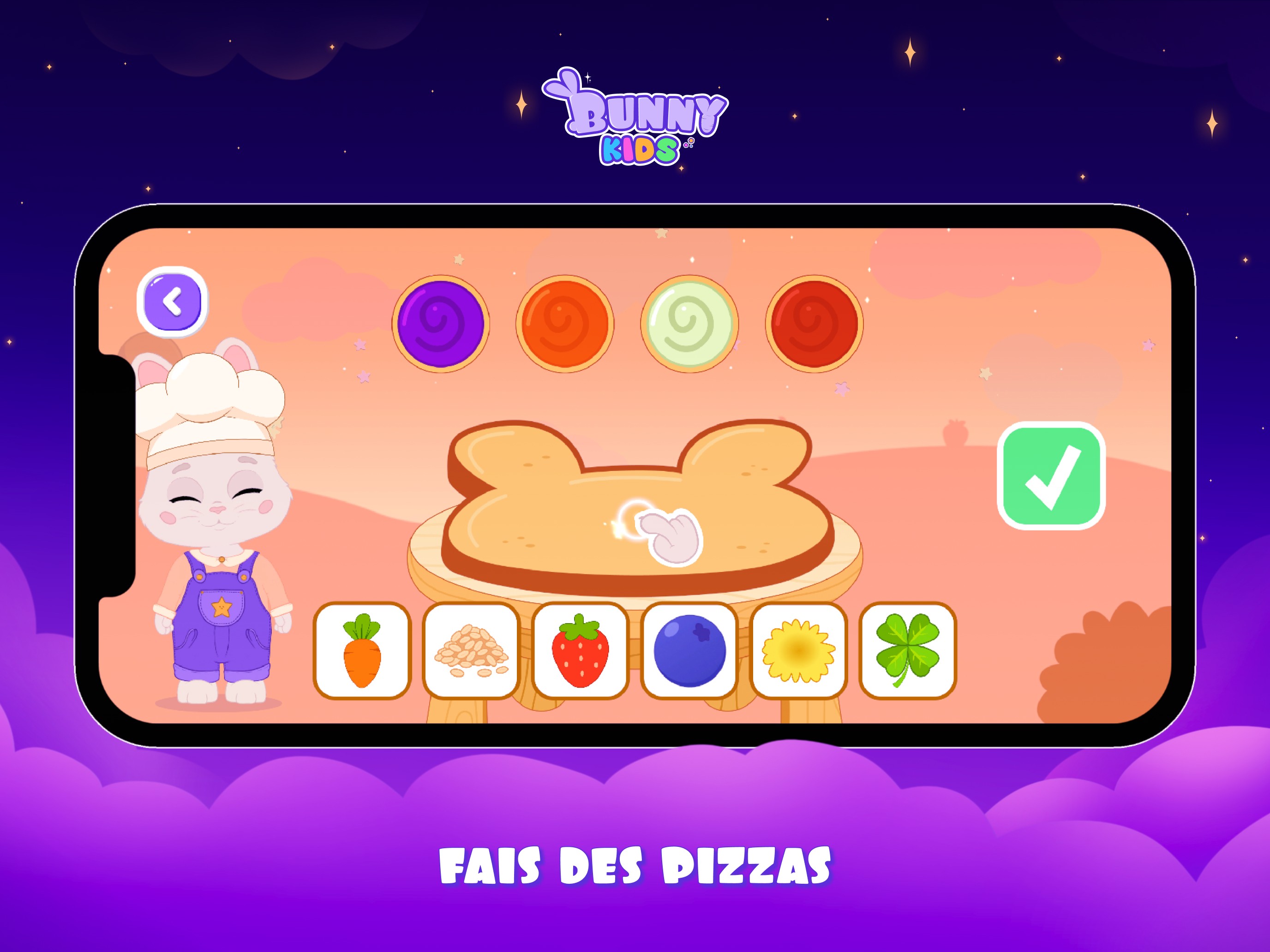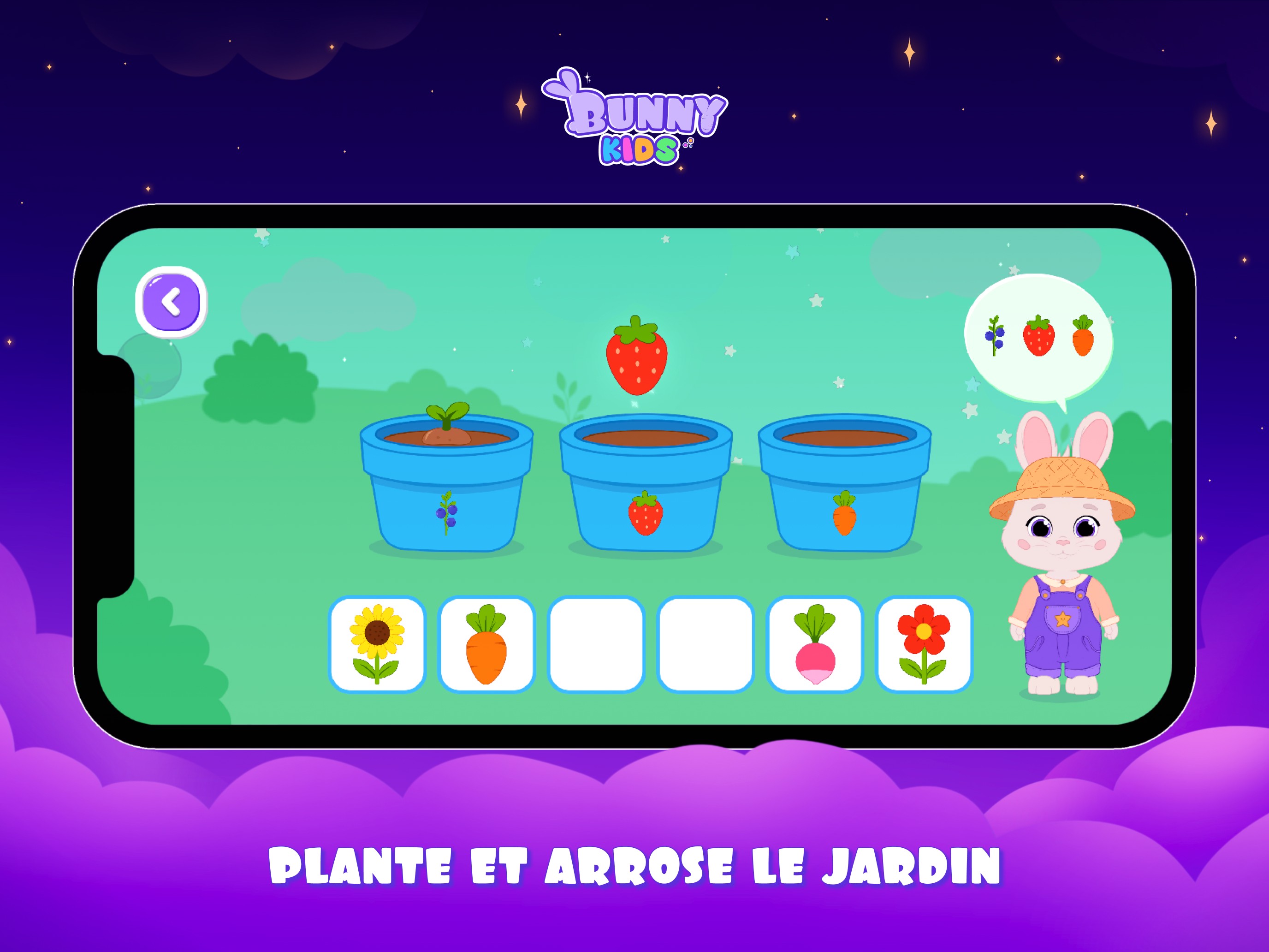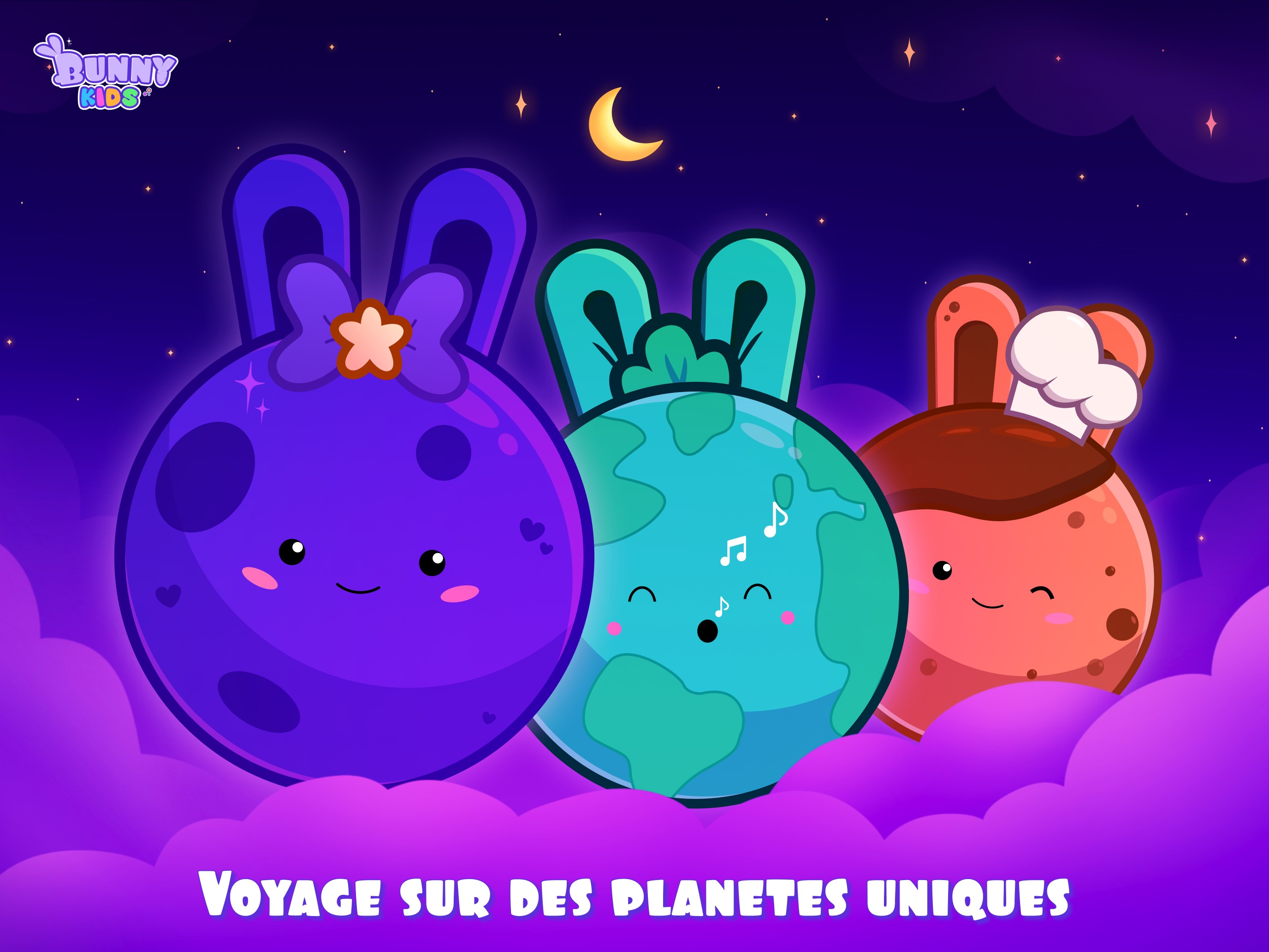 BunnyKIDS est une application ludique et éducative qui invite votre enfant à voyager de planète en planète à travers les rêves de Bunny, une petite lapine pleine d’imagination qui aimerait devenir astronaute.
